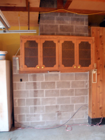 After the cabinets were moved, several blocks were removed to gain access to replace the flueliners.