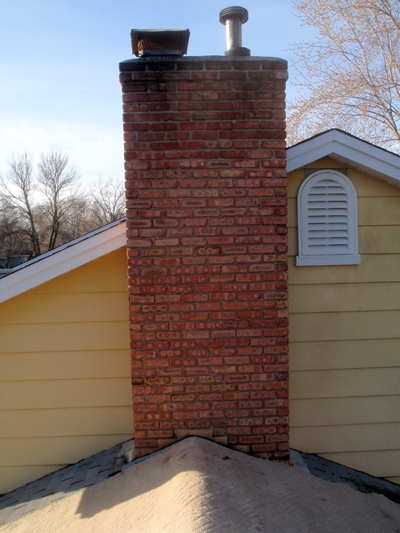 After the flueliners were replaced, the original bricks were set back in place, using colored mortar to replicate the weathered surrounding mortar. The new mortar color tames after two weeks of curing.