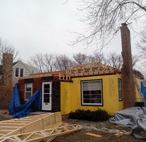 This chimney was extended 6 ft. after an extensive remodeling project by Bluestem Construction which added a second floor on top of a one story house.