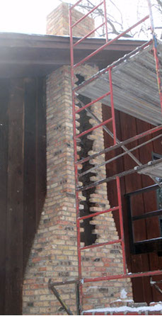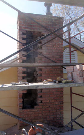 After the cabinets were moved, several blocks were removed to gain access to replace the flueliners.