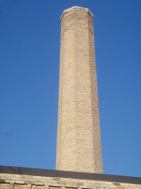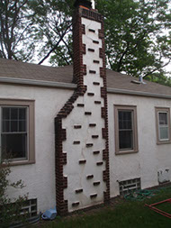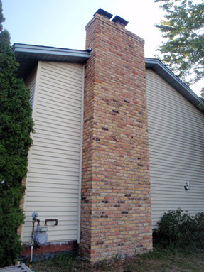 The chimney was hit by lightning. The top 23 ft. was rebuilt with matching brick and the following 20 ft. below had the mortar joints ground and tuckpointed.